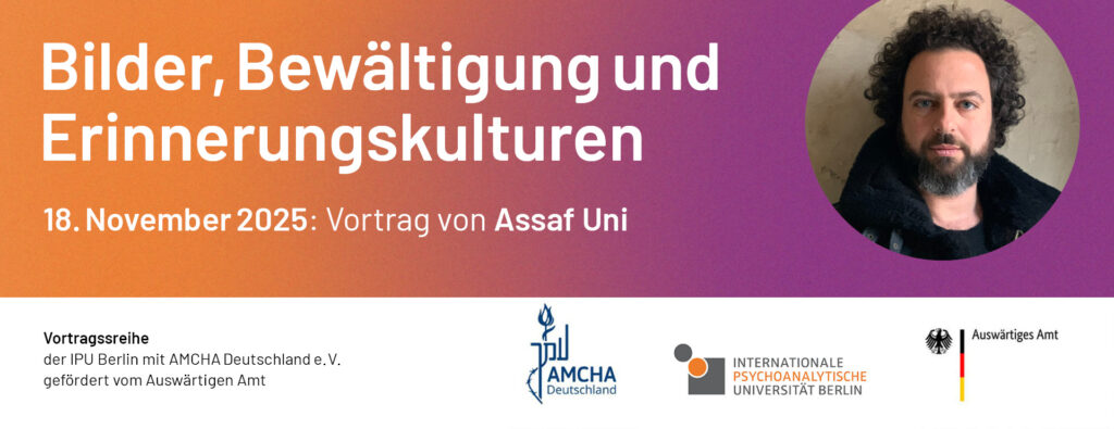 Unter dem Titel »Bilder, Bewältigung und Erinnerungskulturen« laden die IPU Berlin und AMCHA Deutschland e. V. – nach »Transgenartionalem Trauma begegnen« (2024) – auch in diesem Jahr zu einer gemeinsamen Vortragsreihe ein. Beleuchtet werden die Wechselwirkungen von transgenerationalen Traumata, Erinnerungskultur und psychosozialer Verantwortung im Kontext kollektiver Gewalt